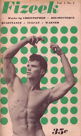 I don't know how, or when, Clark came to paint muscular, unclothed young men but perhaps he was inspired by the success of George Quaintance. Clark burst into gay male consciousness when he was featured in the premiere issue of Fizeek magazine (not Fizeek Art Quarterly). The issue is not dated but probably came out in 1957.